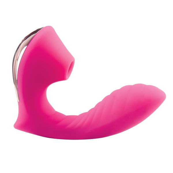 Девайс для одновременной стимуляции точки G и клитора. При этом, G-зону стимулирует мини вибратор с анатомической верной формой ствола, увеличенной, рельефной и изогнутой головкой. А, клитор стимулируется волнами вакуума, что исключает потерю чувствительности, даже после нескольких оргазмов!