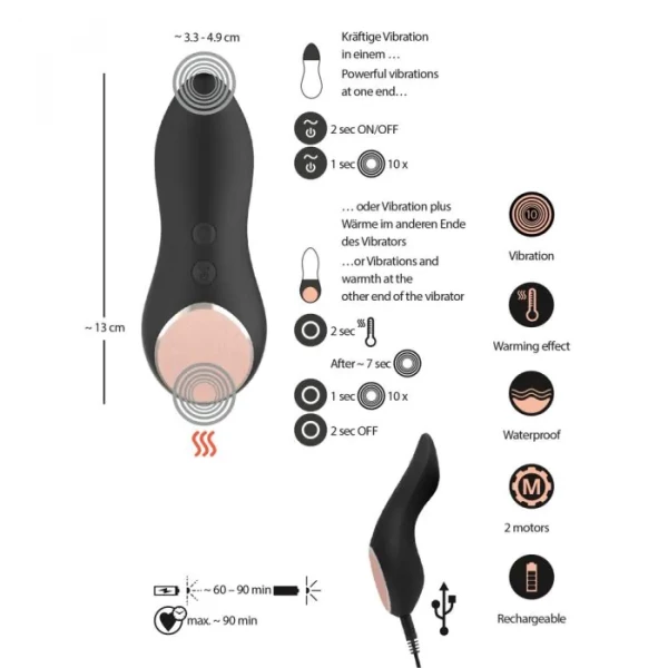 Форма вибратора максимально анатомична и идеальна даже для длительного ношения в трусиках! Выступы на вибраторе создадут дополнительное давление на клитор и вульву, что значительно увеличит градус возбуждения! Обратная сторона вибратора (ограничитель) имеет плоскую скошенную поверхность с твердым покрытием, которая нагревается до 50C! Идеально для стимуляции наружных эрогенных зон, в особенности клитора!