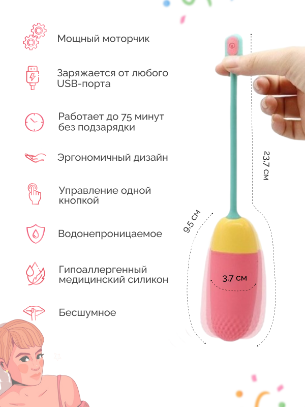 Виброяйцо - уникальная "игрушка", ведь оно включает в себя клиторальный вибратор, вагинальный вибратор, тренажер мышц тазового дна и мини вибромассажер для всех зон на Вашем теле и теле Вашего партнера!